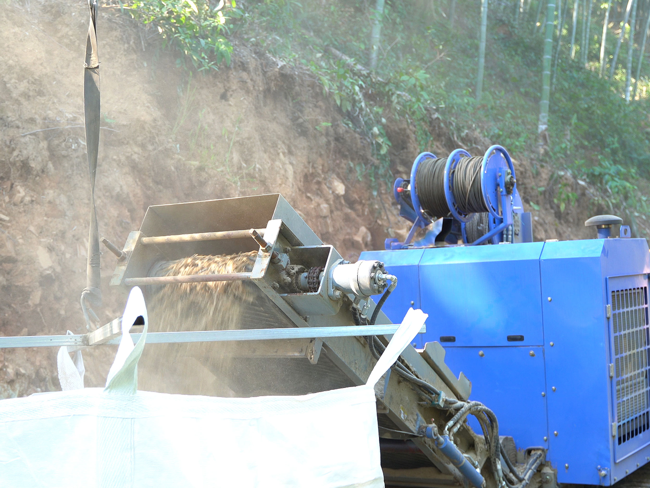 QLG200C 是中能装备针对竹林、林场自主研制的一款全液压履带式集材粉碎机。设备为柴油动力,可轻松粉碎竹子、树木,最大粉碎直径 200mm,处理能力为 10m/h,粉碎粒径12-50mm 可调,可选配钢制或橡胶履带、集材索道运输系统。设备集竹子拖运、粉碎功能于一体,粉碎料可直接用于生产有机肥料反哺苗木生长或作为菌菇生长基质。