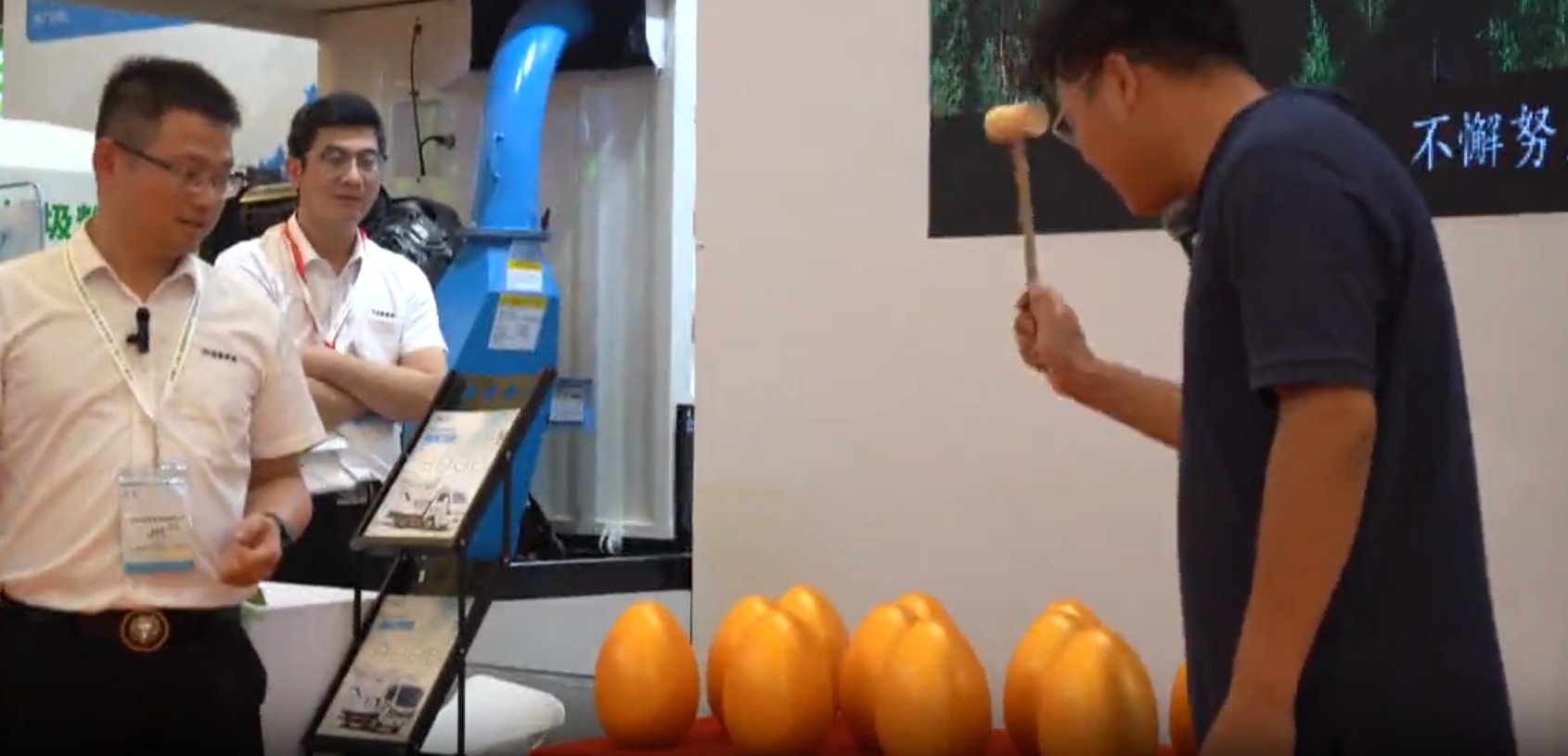 而且现场设有砸金蛋活动,优惠力度极大,纷纷下单订购,现场成交订单数笔,其中有个四川的客户下单订了十几台树木粉碎机。展会成果大大超预期。