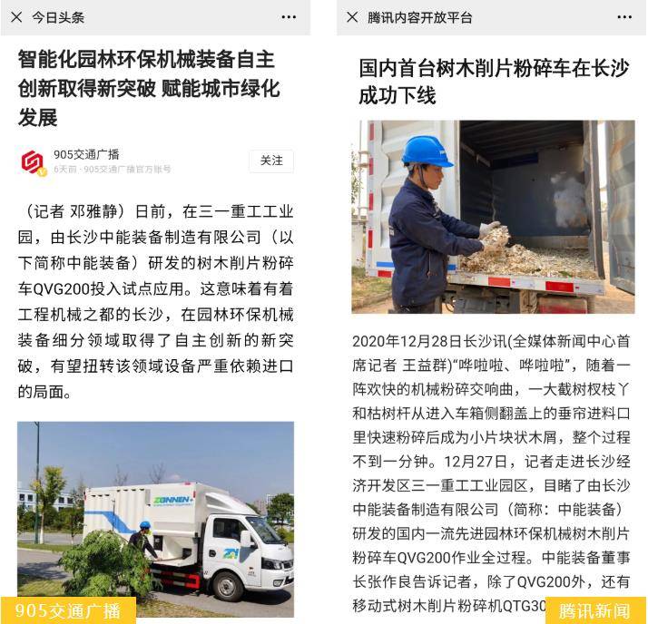 多家报纸、电视、网络新闻媒体等平台的集中报道,是对中能装备树木削片粉碎车QVG200产品成果的肯定。后续,中能装备将继续加大研发投入,不断开发适用于我国国情的园林废弃物资源化处理设备,填补我国园林废弃物资源化处理设备的空白,助力我国园林废弃物资源化产业的健康发展。