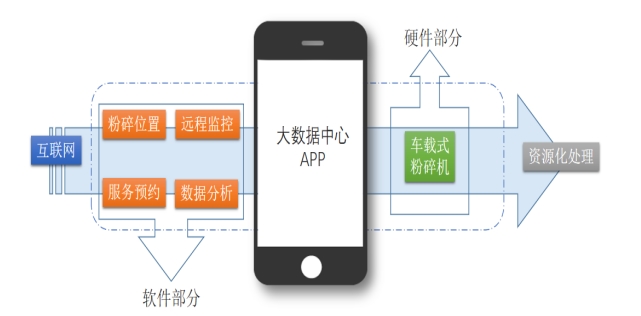 ②处理中端。大数据平台匹配出车数量和工作人员,现场进行粉碎、清运作业。通过大数据中心将相关处理数据反馈给客户,满足客户后续对信息留存、统计、分析的需要。