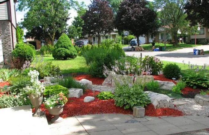 有机覆盖物质地粗糙,形态比较自然,并且富有质感,丰富了城市园林以及景观的素材,将各种色彩有机覆盖物与园林景观观赏植物进行组合装置。
